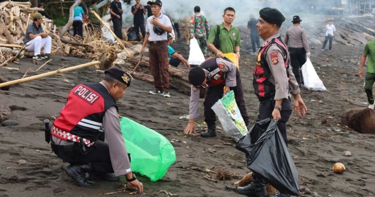 Kepolisian Resor Jembrana kembali menunjukkan komitmennya dalam menjaga kelestarian lingkungan melalui keterlibatan aktif dalam kegiatan gotong royong pembersihan pantai. Bersinergi dengan Pemerintah Kabupaten Jembrana, TNI, lembaga pendidikan, serta elemen masyarakat, Polri hadir langsung dalam aksi bersih pantai yang digelar di Pantai Desa Medewi, Kecamatan Pekutatan, Minggu (8/2/2026) pagi.
